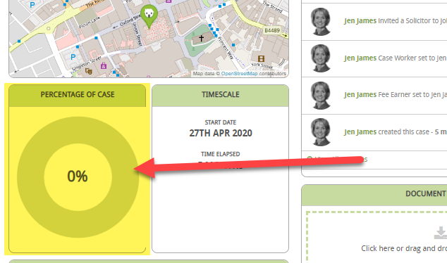 As a case progresses, the percentage of the case will increase. To find the percentage, scroll down on the case to see a pie chart: